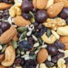 A delicious, slightly sweet trail mix featuring dried cranberries and sultanas, natural seeds, dark chocolate and a trio of raw and roasted nuts for a satisfying crunch. Suitable for vegans. Free from artificial colours, flavours or preservatives.